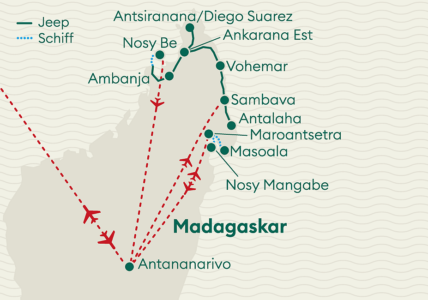 Begeben Sie sich auf eine unvergessliche Reise in den wilden Norden Madagaskars. Dichter Regenwald und Lemuren auf der Masoala-Halbinsel, duftende Vanilleplantagen, traumhafte Strände auf Nosy Be – freuen Sie sich auf eine einzigartige Flora und Fauna.