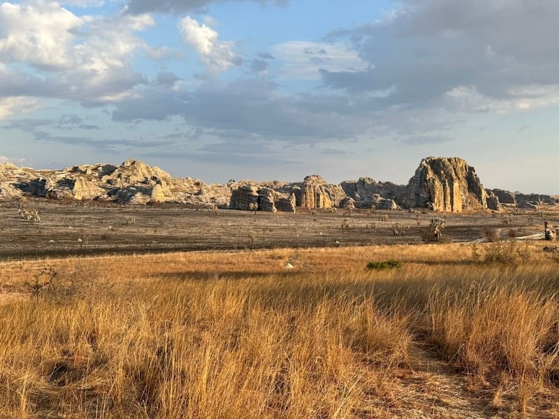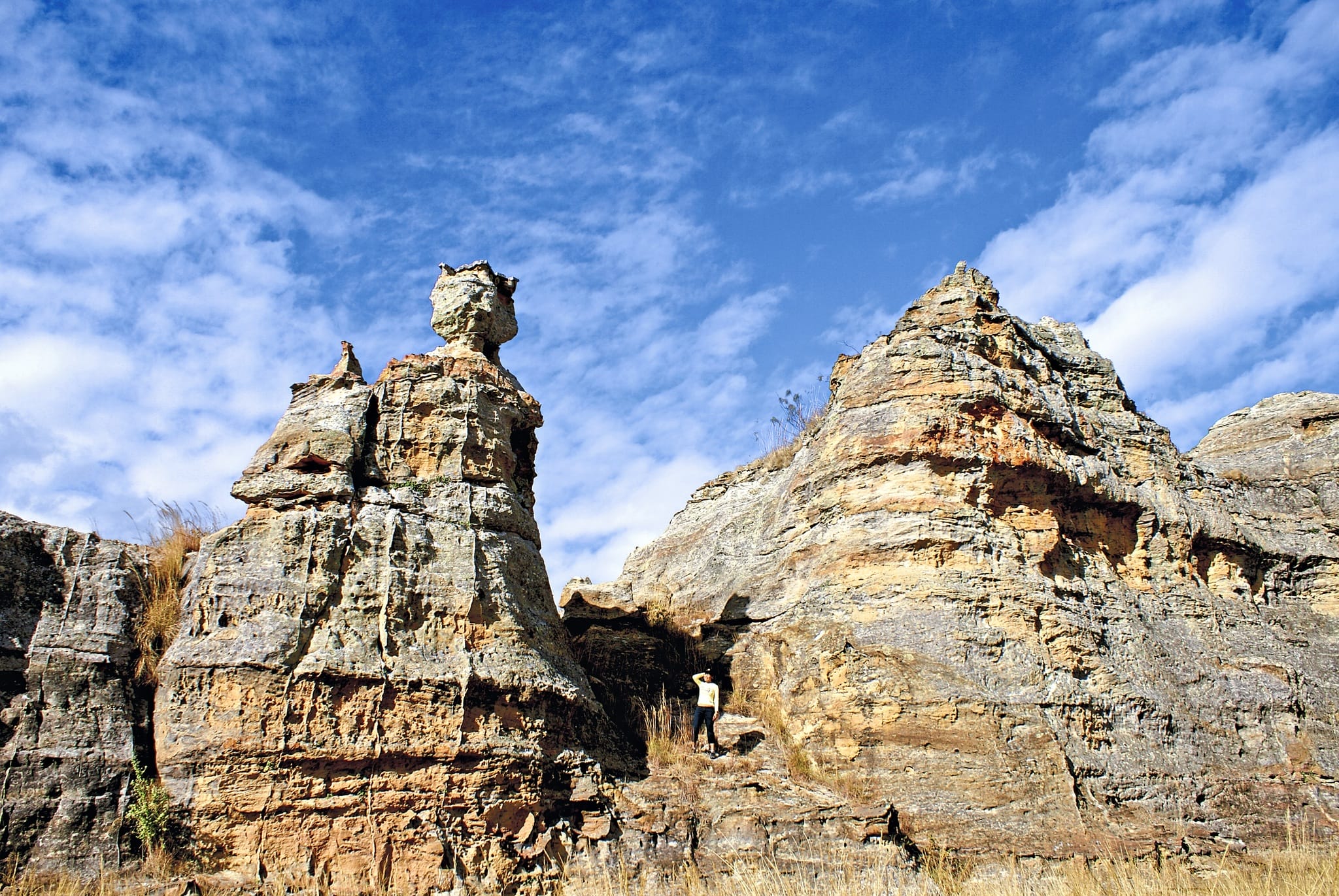 Die Weiterfahrt führt Sie in eine ganz andere Landschaft. Je südlicher, desto trockener wird die Umgebung. Die Berg- und Felslandschaft rund um Ambalavao wird von weiten Grasssavannen abgelöst. Nach dem Überqueren des Plateaus von Horombe befinden Sie sich im Isalo-Gebirge.