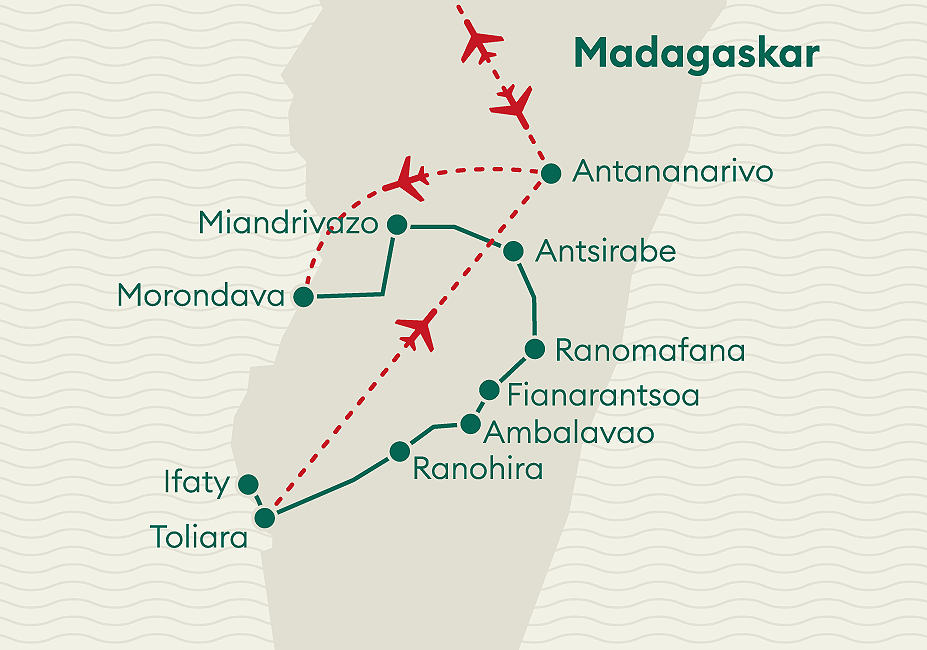 Sie verlassen heute das Isalo-Gebirge und fahren vorbei an weiten Grasssavannen in Richtung Meer, nach Ifaty. Unterwegs sehen Sie immer wieder die widerstandsfähige Bismark Palme und auch wieder Baobabs.