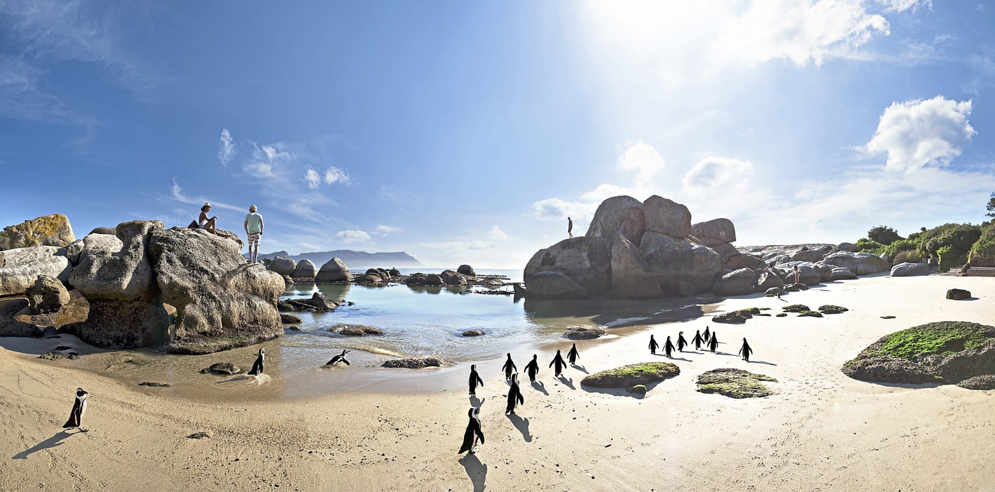Nach einem Mittagessen in der Nähe von Simon's Town besuchen Sie die Pinguine am berühmten Boulders Beach. Auf dem Rückweg nach Kapstadt erwartet Sie als letzter Stopp des Tages der Botanische Garten von Kirstenbosch.