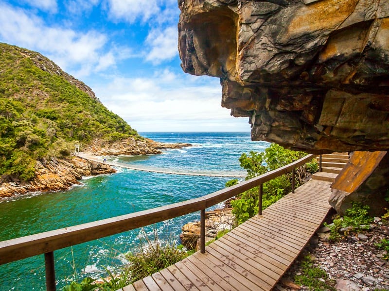 Die Region rund um die Lagunenstadt ist für ihren Holzbau bekannt. In Knysna selbst besuchen Sie die Waterfront und haben Zeit für einen Einkaufsbummel.