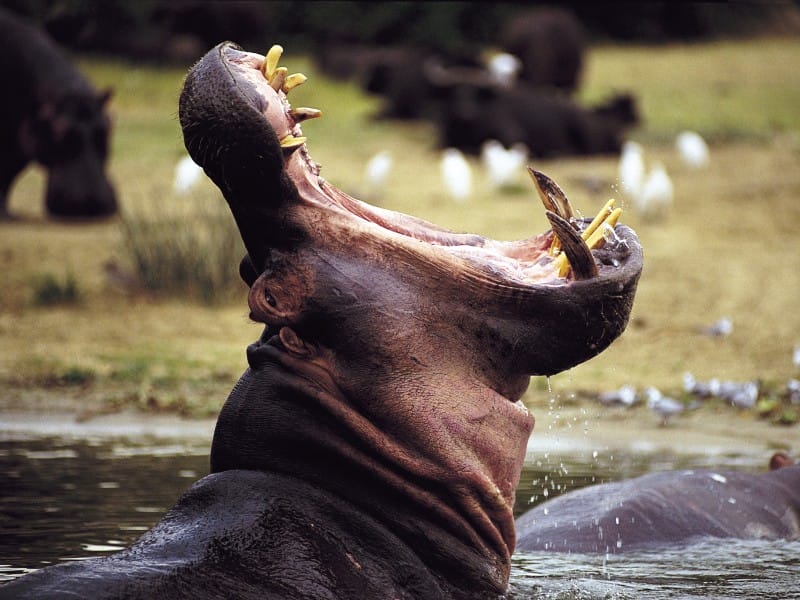 Bei einem Picknick im Krater können Sie eine Wasserstelle beobachten, an die sich von Zeit zu Zeit Flusspferde gesellen, die sehr ungewöhnlich für diese Gegend sind.