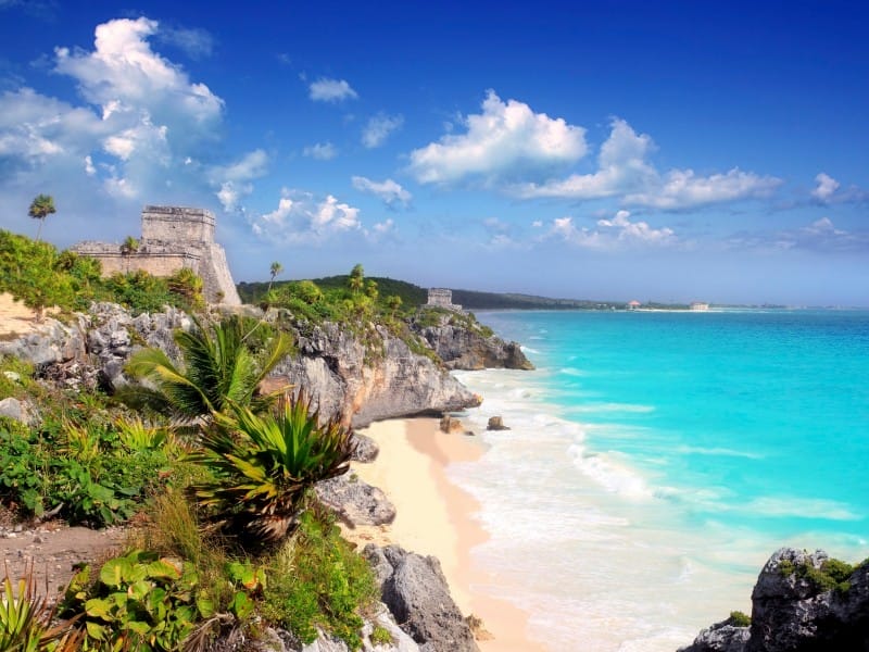 Cancún auf der Halbinsel Yucatan ist eines der beliebtesten Reiseziele in Mexiko. Die beste Reisezeit für diese Region sind die Monate November bis April, dann herrscht die mexikanische Trockenzeit und die Temperaturen liegen durchschnittlich knapp unter 30 Grad am Tag, bei ca. 19 Grad in der Nacht. Es ist sommerlich warm und trocken, es sind nahezu keine Regentage zu verzeichnen. Das Meer ist mit 24-26 Grad Wassertemperatur perfekt zum Baden und Schwimmen.