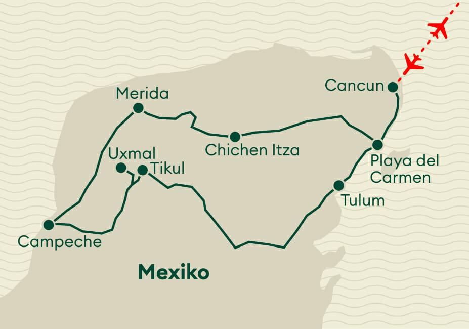 Nach Ankunft am Flughafen werden Sie von Ihrer lokalen Reiseleitung willkommen geheissen und ins Hotel in Playa del Carmen begleitet. Der kleine Ort mit seiner entspannten Atmosphäre, dem leckeren, typischen Essen und den vielen Salsa-Bars, direkt an der Riviera Maya, ist der perfekte Ort, um erst einmal in Mexiko anzukommen. Bei einem gemeinsamen Abendessen in einem typischen Restaurant können Sie sich auf die Reise einstimmen.